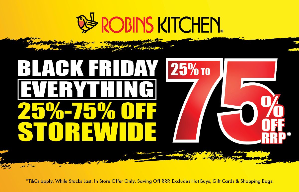 25 – 75% off everything storewide at Robins Kitchen!